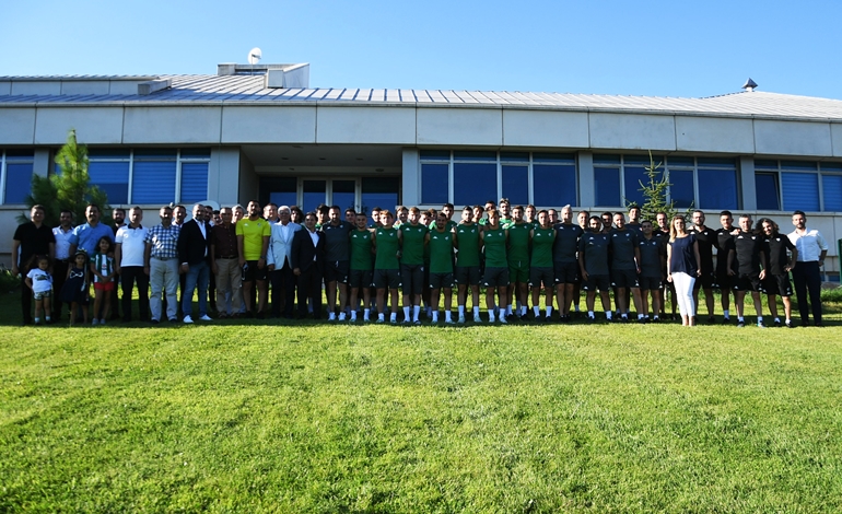 Bursaspor’da dün bayramlaşma töreni gerçekleştirildi. Özlüce İbrahim Yazıcı Tesisleri’nde gerçekleşen törene Yeşil Beyazlıların yönetim kurulu, Divan Kurulu, Disiplin Kurulu, teknik ekip, futbolcular ve kulüp personeli bir araya geldi. Bayramlaşma töreninde konuşan Bursaspor Başkanı Mesut Mestan, "Camia olarak tüm Bursa'nın ve Bursaspor'luların bayramını kutlarım. İnşallah hep birlikte daha nice bayramlar kutlarız" derken, Divan Başkanlık Kurulu Başkanı İdris Sevinç, “Öncelikle buraya katıldığınız için teşekkür ediyorum. Burada bulunan herkesin ve tüm İslam aleminin bayramını kutluyorum. Bayramlar birlik ve beraberliğin yaşatılması adına çok önemli günler, umarım Kurban Bayramı da şehrimize ve ülkemize hayır getirir, iyilikler getirir” şeklinde konuştu.