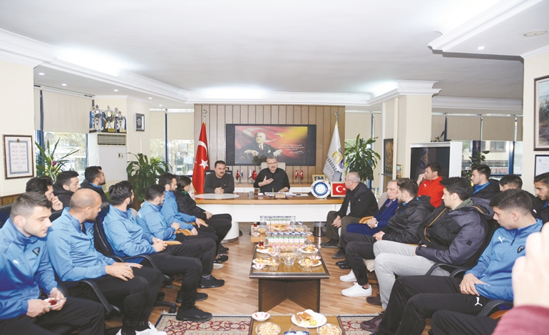 Karacabey Belediyespor Başkanı Uğur Koçak, Karacabey Belediyespor teknik heyeti ve futbolcuları Karacabey Belediye Başkanı ve Karacabey Belediyespor Onursal Başkanı Ali Özkan’ı ziyaret etti. Ziyarette Karacabey Belediye Başkanı ve Karacabey Belediyespor Onursal Başkanı Ali Özkan, Karacabey Belediyespor Başkanı Uğur Koçak, Karacabey Belediyespor yöneticileri, teknik heyet ve futbolcuları hazır bulundu. Ali Özkan’ın 3.Lig’e çıkmalarında büyük emeği olduğunu söyleyen Karacabey Belediyespor Başkanı Uğur Koçak, “ Başta Ali Özkan Başkanımız ve yönetici arkadaşlarımızın emeği ile hep beraber bugünlere geldik. Play-off oynamayı hatta şampiyon olmayı istiyoruz. “ O sene bu sene” diyoruz. Bunun için elimizden gelen bütün çabayı harcıyoruz” dedi.