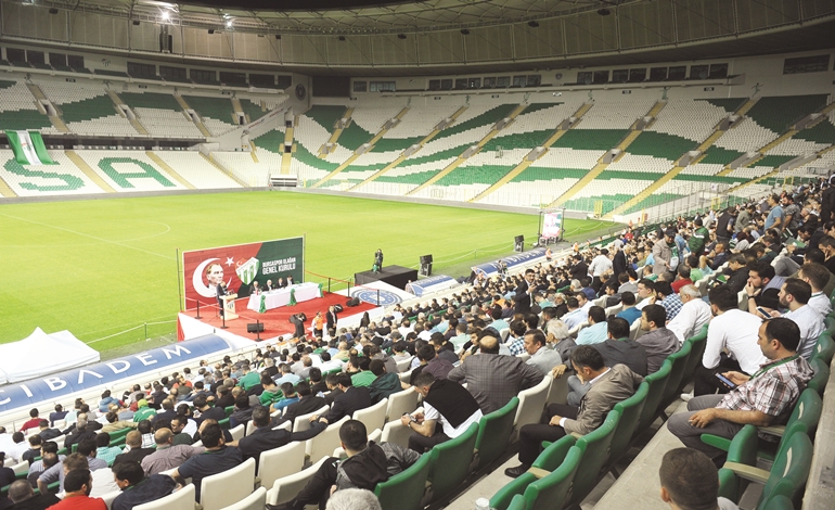 Bursaspor’da 23 Haziran’da yapılacak ve Mesut Mestan’ın tek başkan adayı olarak gideceği genel kurul için geri sayım sürerken, kulislerle büyük bir hareketlilik yaşanıyor. Bir grup genel kurul üyesi kongrede tüzük değişikliğine giderek Mestan’ın karşısına yeni bir başkan adayı çıkarma fikri üzerinde duruyor. Bursaspor camiası bu sürpriz gelişmeyle çalkalanırken, tüzük değişikliği için hayli çetrefilli bir yol izlenmesi gerekiyor. Dernekler kanununa göre kongrede tüzük değişikliğinin yapılmasının önünde bir engel bulunmuyor. Buna göre öncelikle genel kurula katılan kongre üyelerinin onda biri tüzük değişikliği için genel kurul Divan Başkanlığına imzalı önerge verme zorunluluğunda.