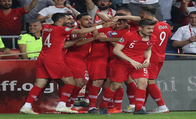 A Milli Takımımız, 2020 Avrupa Futbol Şampiyonası Elemeleri H Grubu üçüncü maçında son dünya şampiyonu Fransa'yı 2-0 yenerek liderliğe yükseldi. Konya Büyükşehir Belediye Stadyumu'nda oynanan ve Slovenya Futbol Federasyonu'ndan Damir Skomina'nın yönettiği maçta Milli Takımımızın gollerini 30. dakikada Kaan Ayhan ve 40. dakikada Cengiz Ünder kaydetti. Maçı Gençlik ve Spor Bakanı Mehmet Kasapoğlu, TFF Başkanı Nihat Özdemir, TFF Yönetim Kurulu üyeleri Servet Yardımcı, Mehmet Baykan, Erdal Bahçıvan, Yılmaz Büyükaydın, Selim Soydan, Ali Düşmez, Mustafa Çağlar, İsmail Erdem, Nuri Akın, Hasan Akıncıoğlu, Mustafa Hacıkerimoğlu, Onur Alkın Kalkavan, Hamit Altıntop, Genel Sekreter Kadir Kardaş, TFF Yedek Yönetim Kurulu Üyesi Fatih Maden izledi. Ay-yıldızlı ekip bu karşılaşmayı kazanarak 9 puanla grup liderliğine yükseldi. Türkiye'nin yer aldığı grupta bugün oynanan diğer maçlarda İzlanda Arnavutluk'u 1-0 yenerken, Moldova da Andorra'yı aynı skorla mağlup etti. Ay-yıldızlı ekip, 2020 Avrupa Şampiyonası Elemeleri H Grubu'nda 11 Haziran Salı günü de deplasmanda İzlanda ile karşılaşacak.