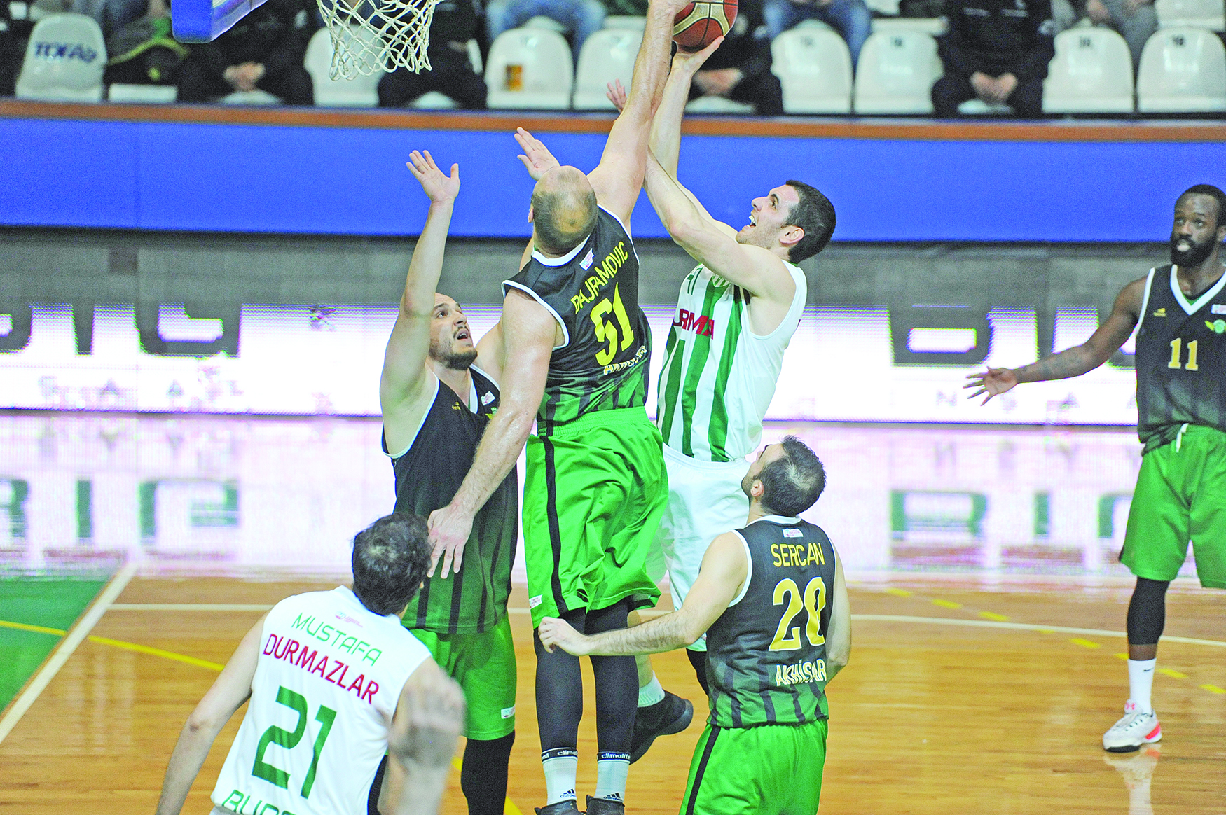 Bu sezon süper lig hedefiyle maçlara çıkan Bursaspor Durmazlar kazanmaya devam ediyor. Türkiye Erkekler Basketbol Ligi'nin 27. haftasında evinde Akhisar Belediye'yi 85-60 yenen Yeşil Beyazlılar, Türk Telekom'un ardından 2. sıradaki yerini korudu. Atatürk Spor Salonu'nda oynanan karşılaşmaya etkili başlayan Bursa ekibi ilk periyodu 24-17 önde tamamladı. İkinci çeyrekte de üstünlüğü elden bırakmayan Potanın Timsahları devre arasına 18 sayı farkla 47-29 üstün girmeyi başardı.