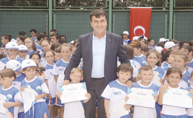 Branşlar hakkında da bilgi veren Dündar, “Bu yıl, yaz spor okullarında 2005-2012 doğumlu çocuklarımız yüzme, basketbol, voleybol, taekwondo, judo, kort tenisi ve masa tenisi kurslarımızdan yararlandı. 4 dönem halinde gerçekleştirdiğimiz yüzme kurslarımızın son dönemi 28 Ağustos’ta başlayıp 9 Eylül’de sona erecek. Yaz spor okullarında 5 bin 500 öğrencimiz tesislerimizden faydalandı. Çocuklarımızı yürekten tebrik ediyor, başarılarının devamını diliyorum” diye konuştu. Konuşmasının ardından Başkan Dündar, yüzme kurslarını başarı ile tamamlayan öğrencilere sertifikalarını verdi.